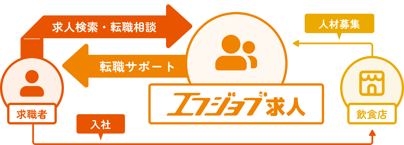 『エフジョブ求人』は、飲食業界への転職を希望する方と企業をマッチングするサービスです。